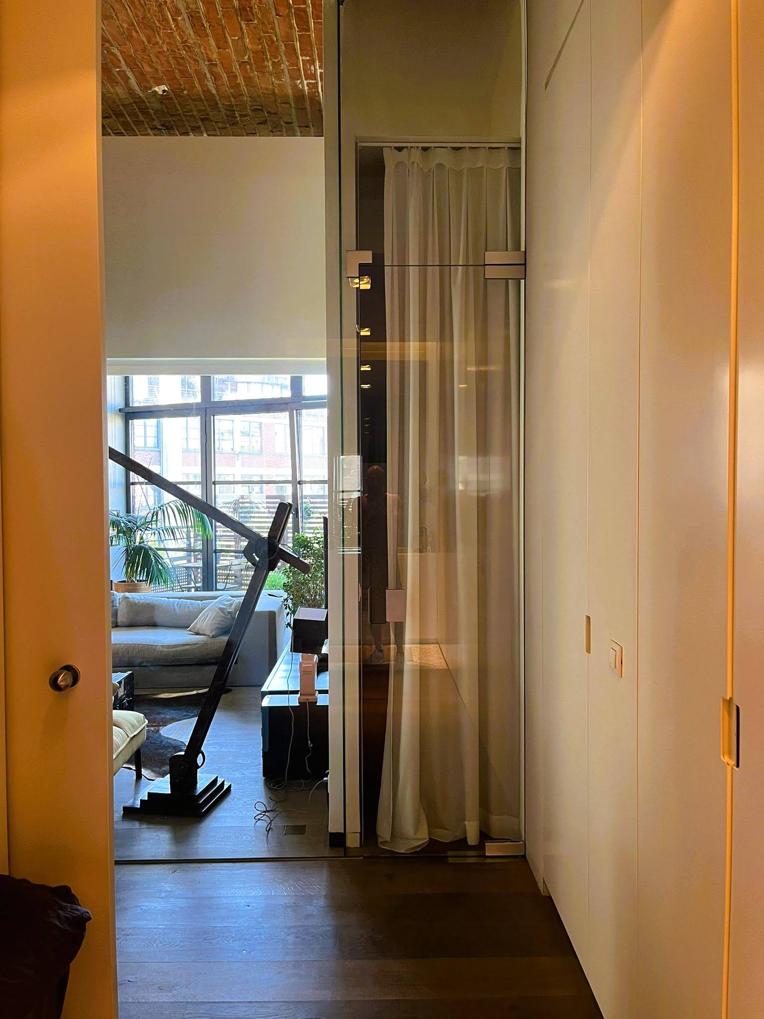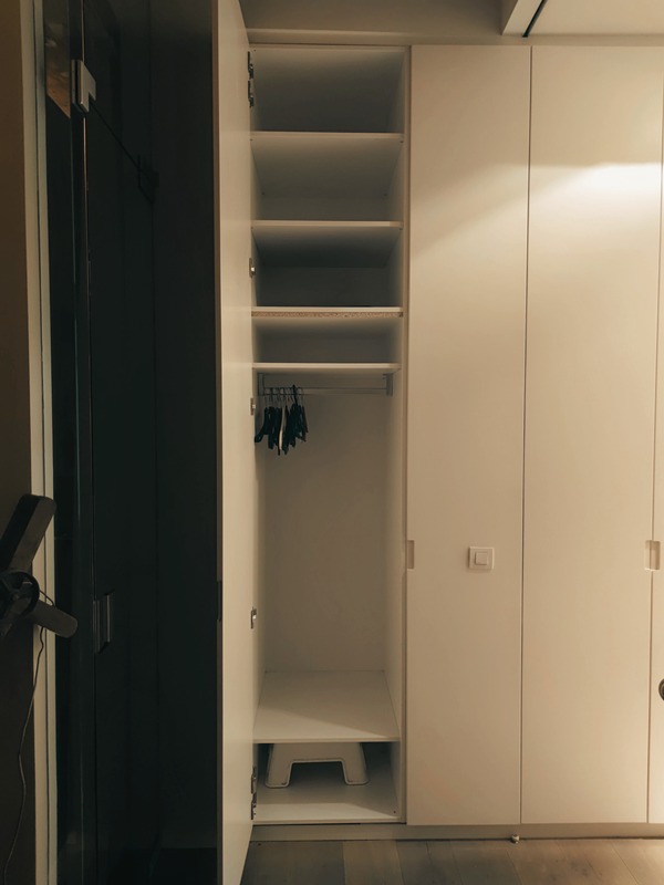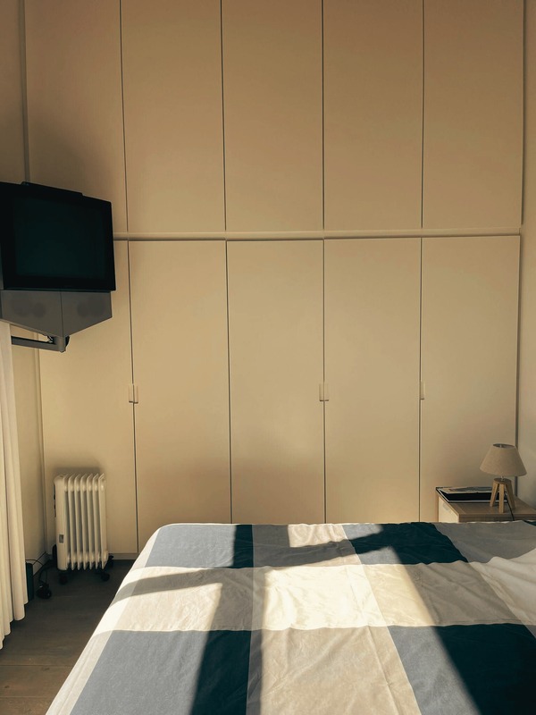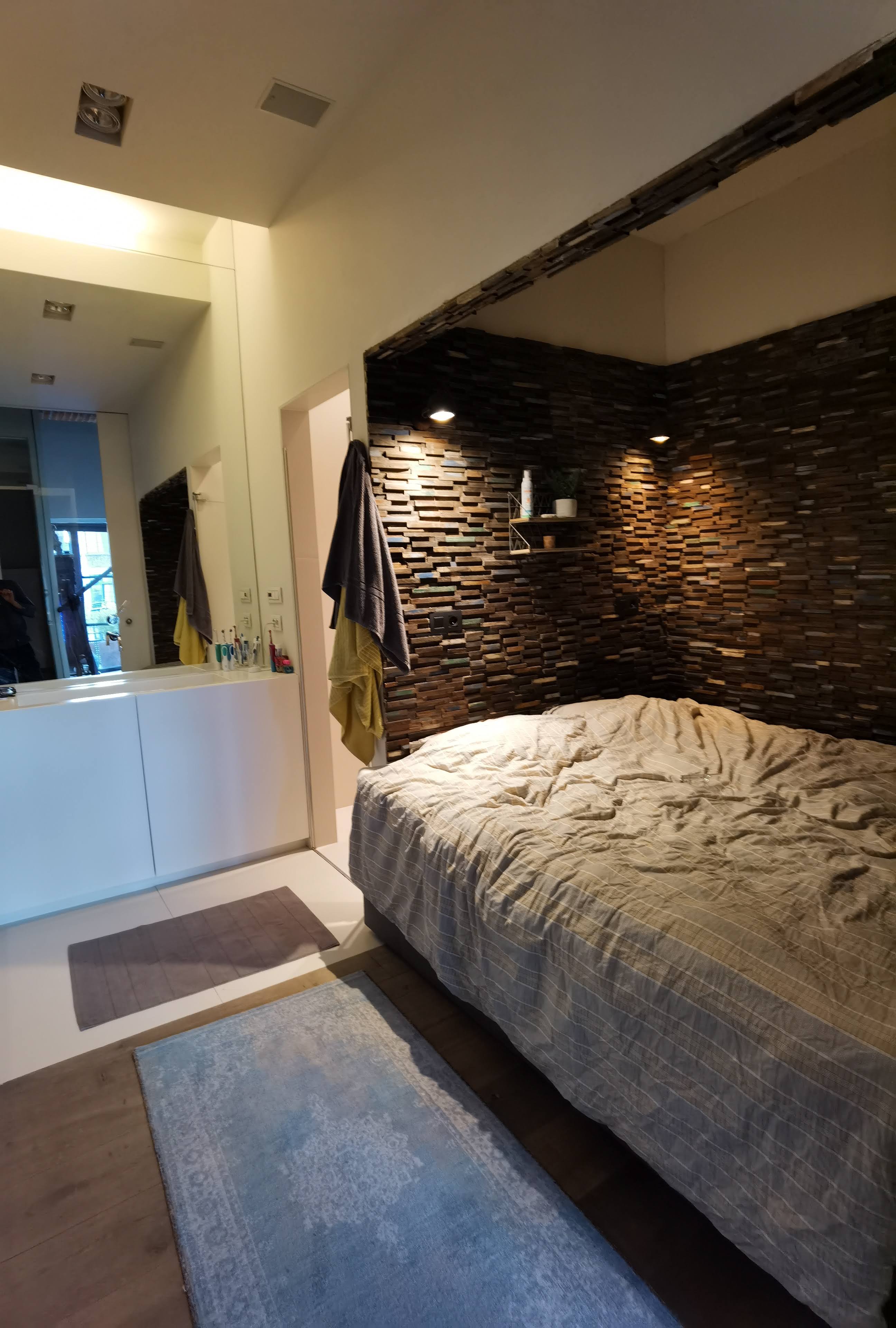 Vous y trouverez également un lit king-size de 180x200cm, ne grande porte coulissante sur mesure, ainsi qu'un miroir géant sur mesure.
